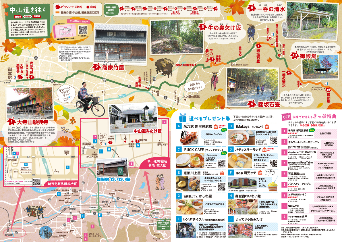 また、指定10店舗中1店舗から選んで使える「選べるプレゼント券」、指定店舗をご利用の際に、様々な特典・割引が受けられる「何度でも使える特典・割引チケット」がセットになっています。