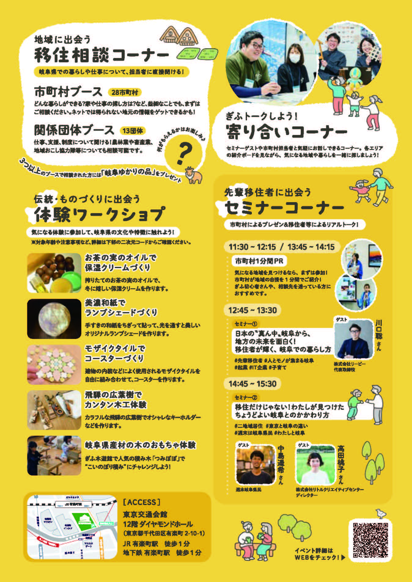 岐阜県内28市町村と13の関係団体が集結!地元の情報が詳しく聞ける移住相談ブースや、5つの体験・ワークショップ、先輩移住者による本音のトークイベントなど、東京で「ぎふの魅力」に出会うことのできる、岐阜県最大級の移住イベントです。今回なんと、御嵩町も出展いたします!