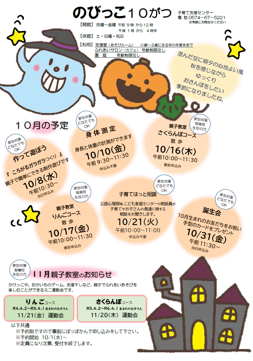 ぽっぽかん10月のお知らせ