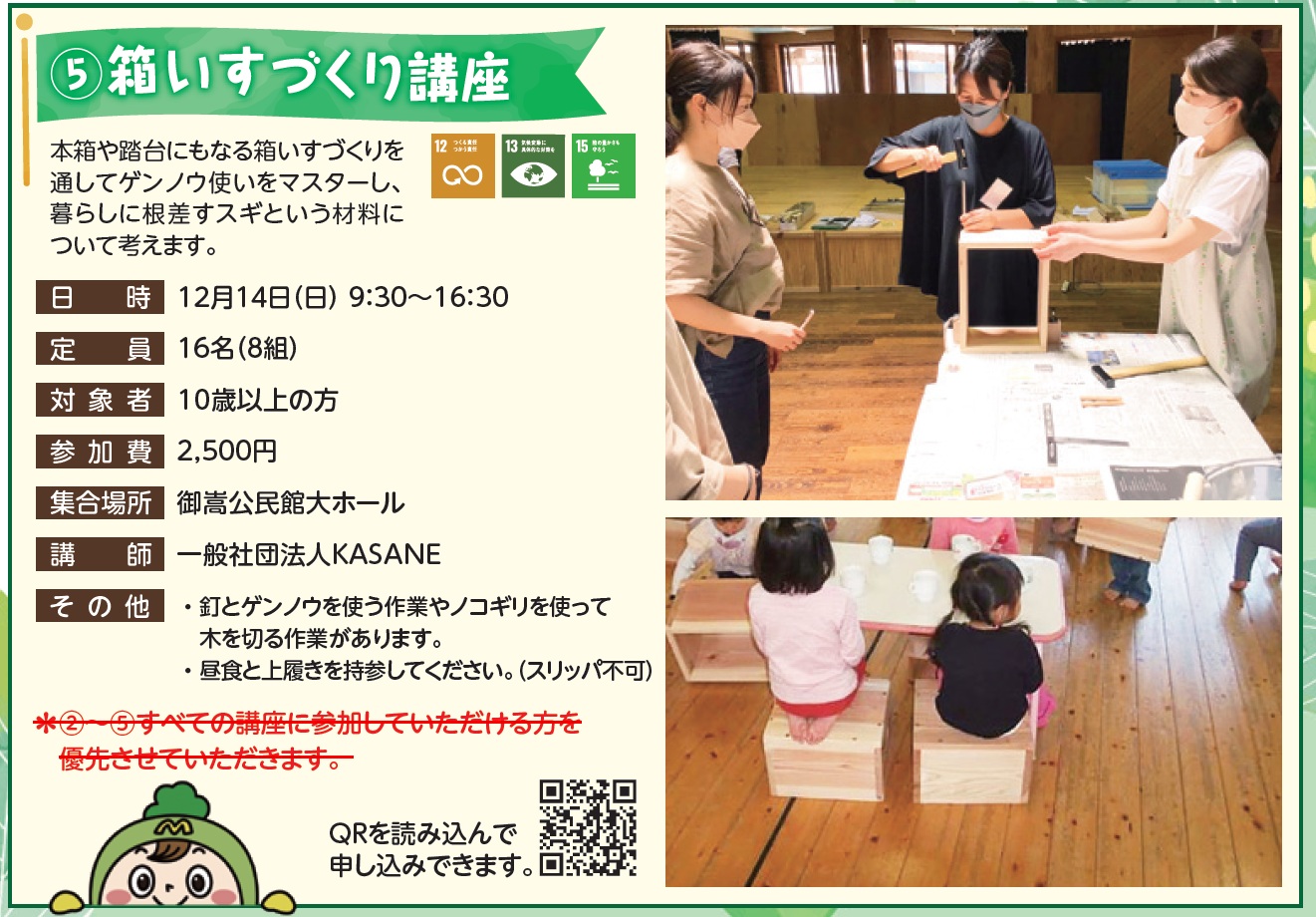 箱いすづくり講座      令和7年12月14日(日)9:30~16:30