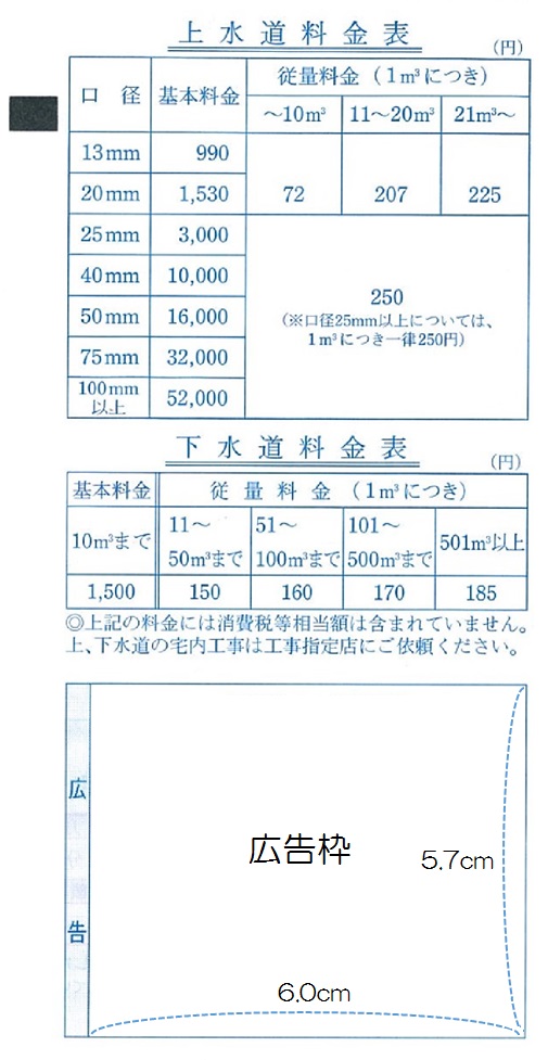 上下水道課では、「使用料金のお知らせ」(検針票)の裏面に掲載する有料広告を募集します。