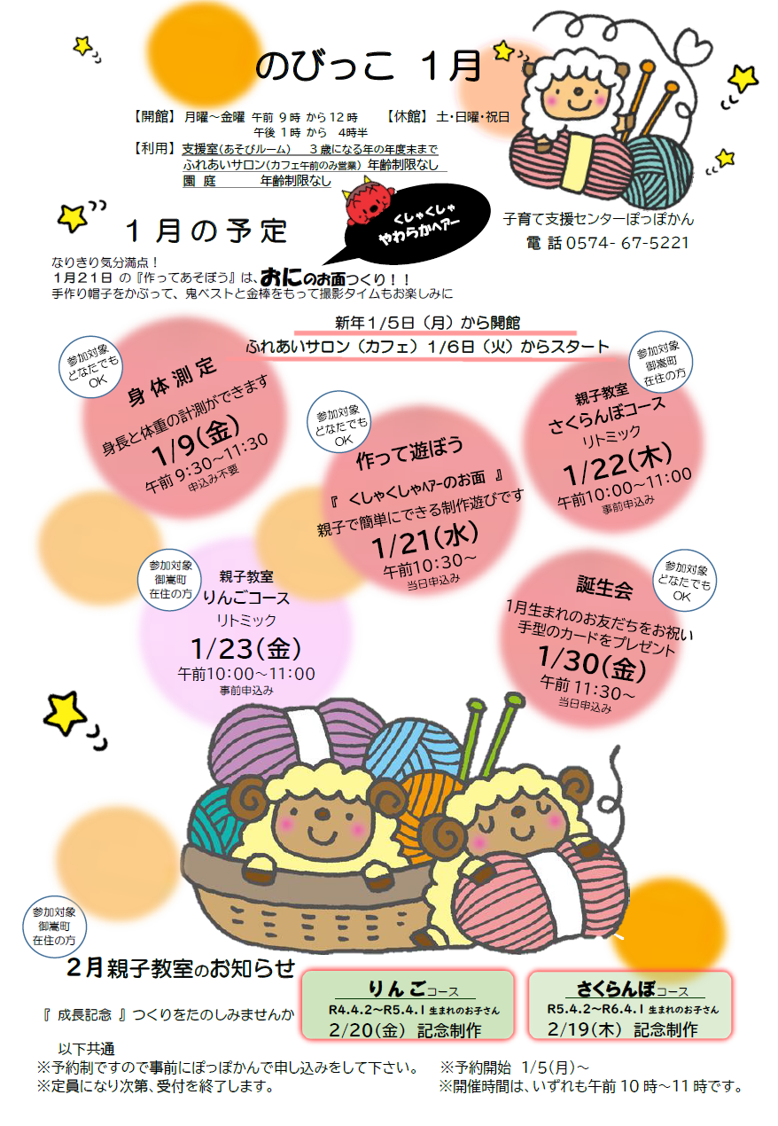 ぽっぽかん1月のお知らせ