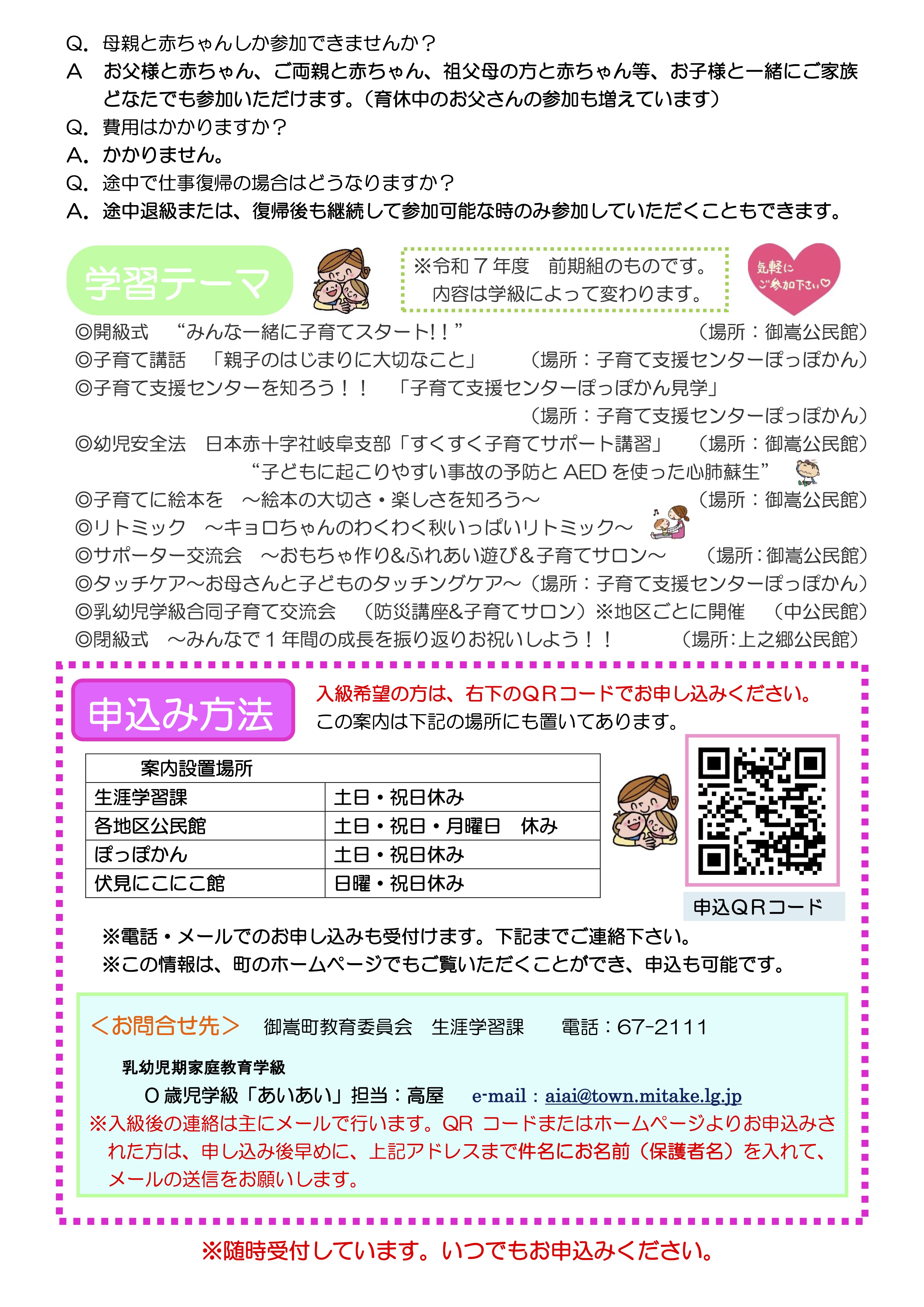 対 象 : 町内在住の0歳児(2ヶ月以上)の親または保護者